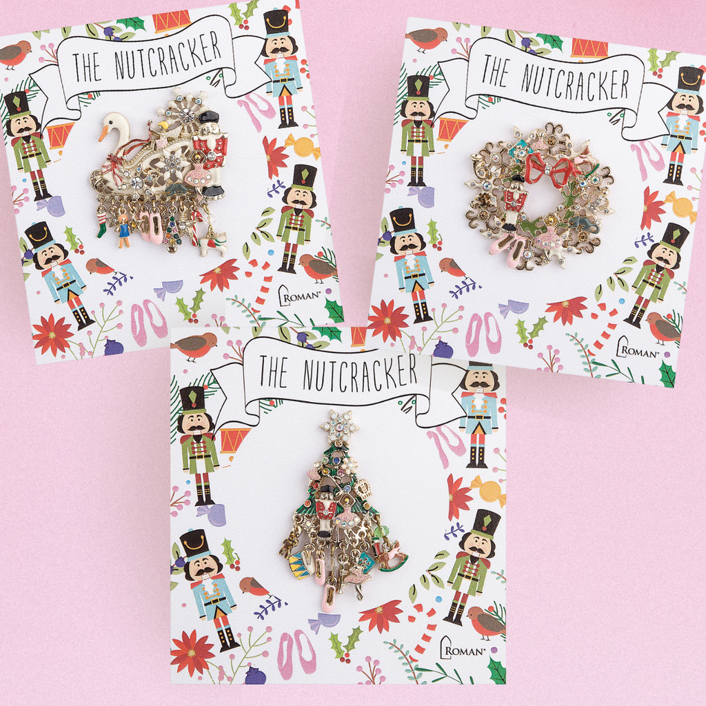 This charming 2.25"H Nutcracker pin features a festive Christmas tree design accented with whimsical Nutcracker Ballet details. A cheerful way to dress up coats, scarves, or bags, it brings the spirit of the season wherever you go. Packaged on a festive card, it’s ready for easy gifting.