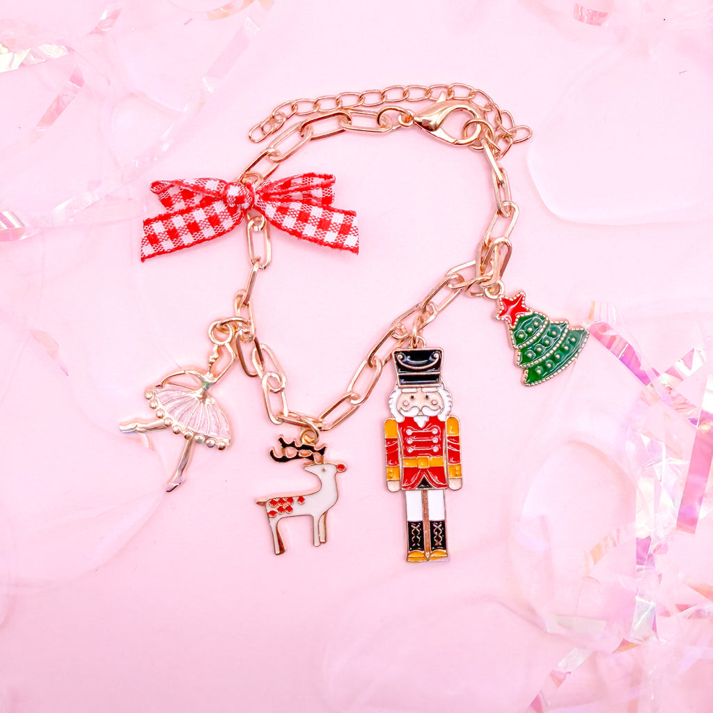 Bring the wonder of the season to life with this Nutcracker Charm Bracelet. Adorned with a series of colorful charms including a tree, nutcracker, reindeer, ballerina, and a bow, it beautifully reflects the spirit of the beloved holiday story.